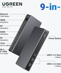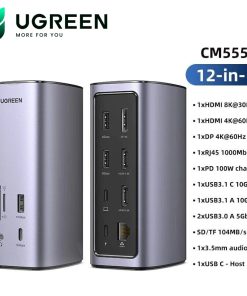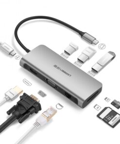 Bộ chuyển USB C to HDMI + VGA + USB 3.0 + LAN 1Gbps + Card Reader + PD Power 100W Ugreen 15600 CM498